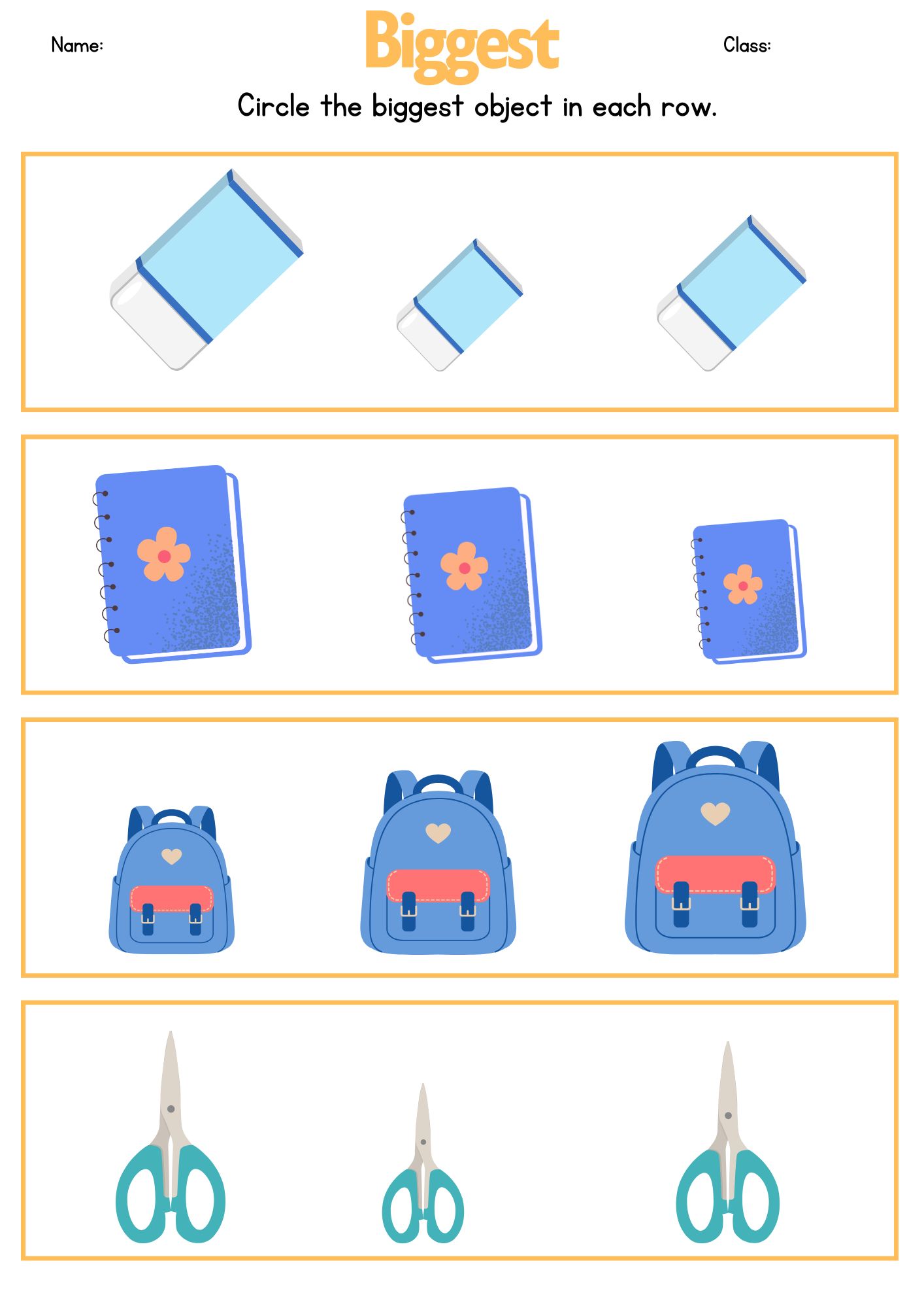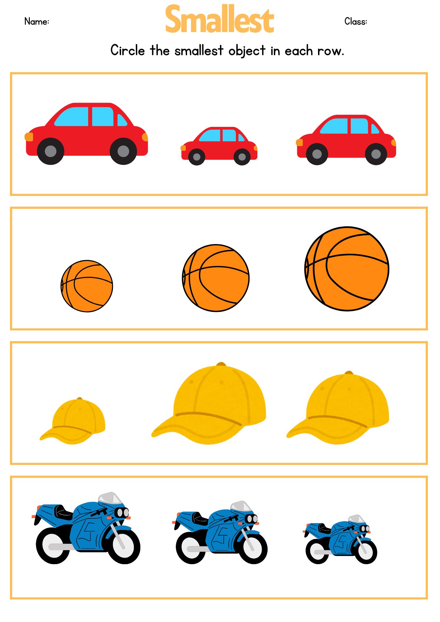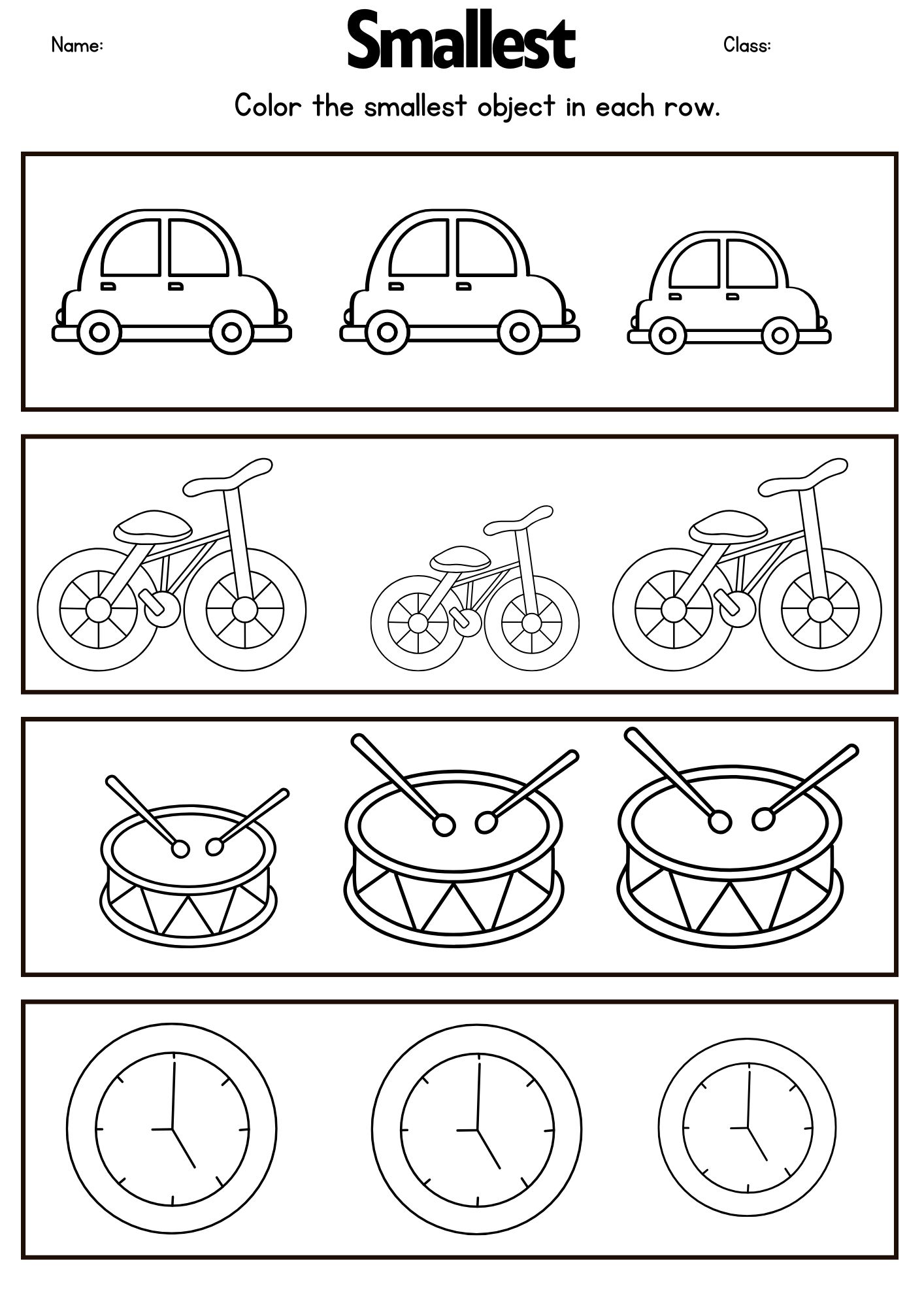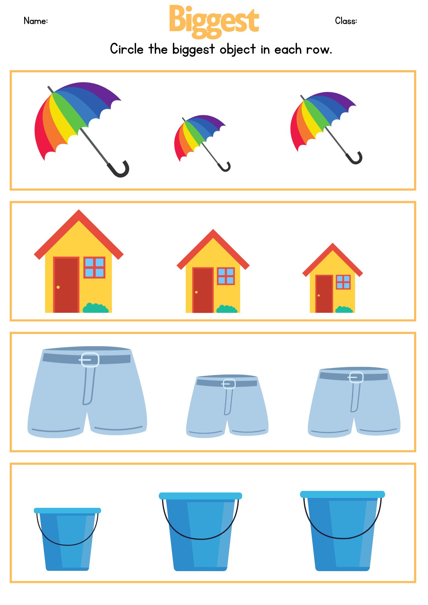 3. Have them circle, color, or point to the biggest and smallest items.