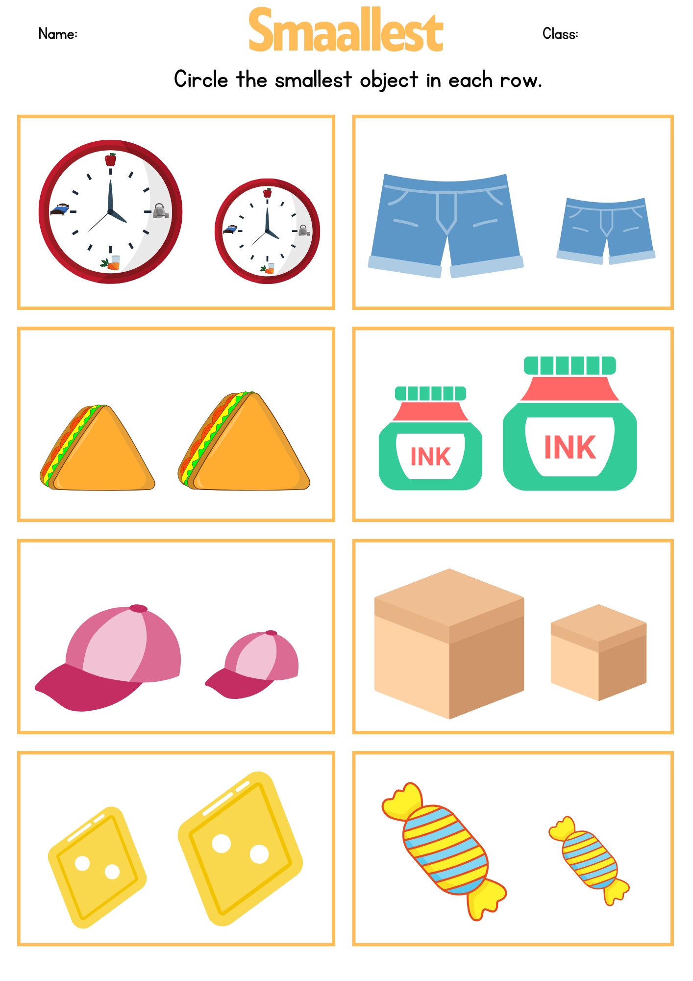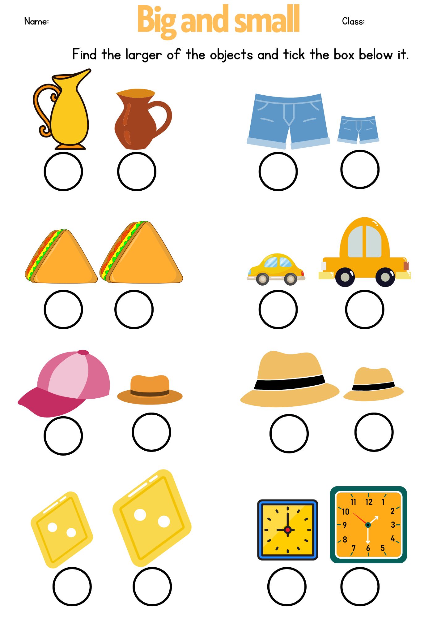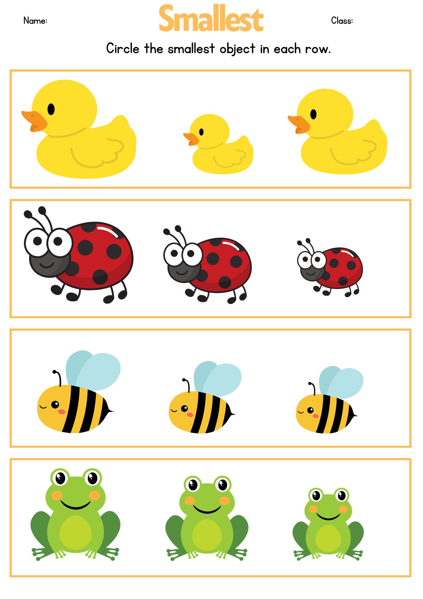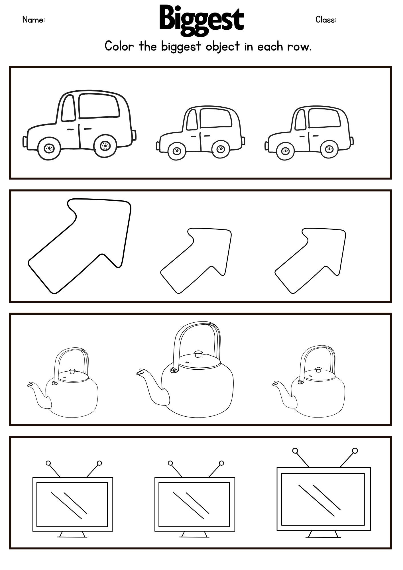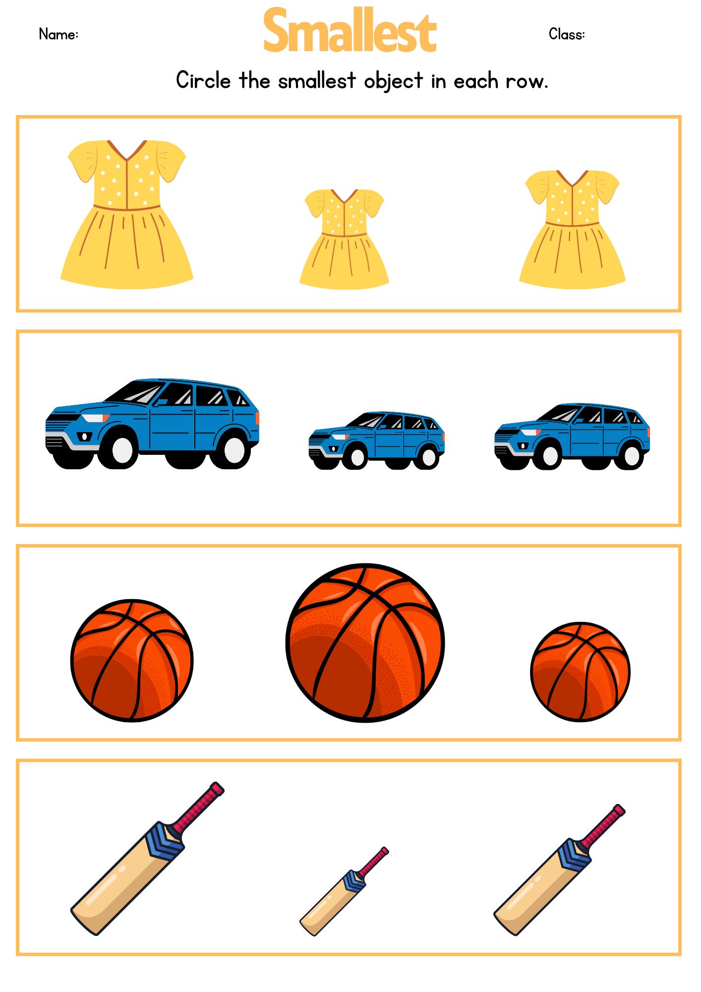 3. Have them circle, color, or point to the biggest and smallest items.
